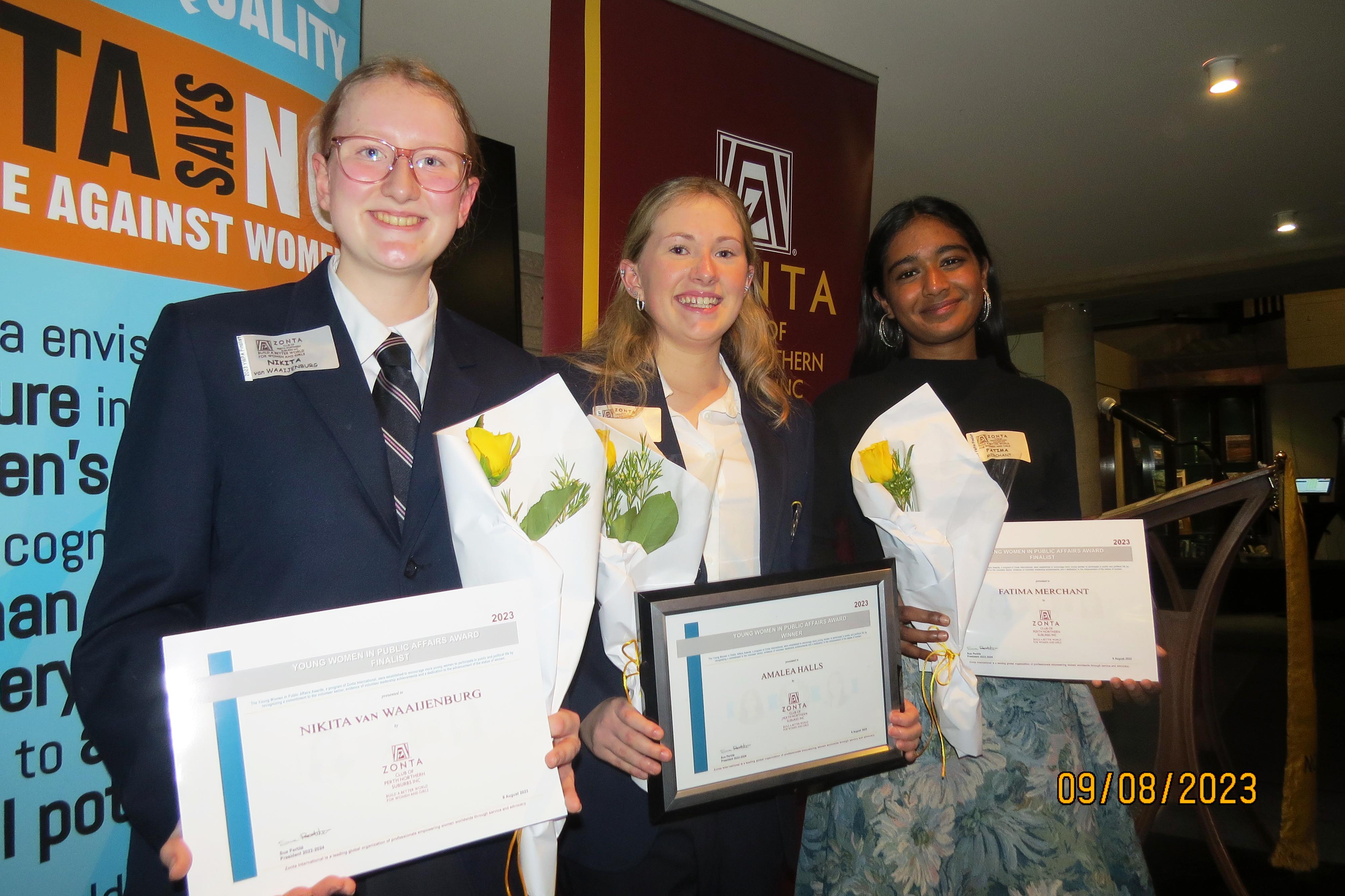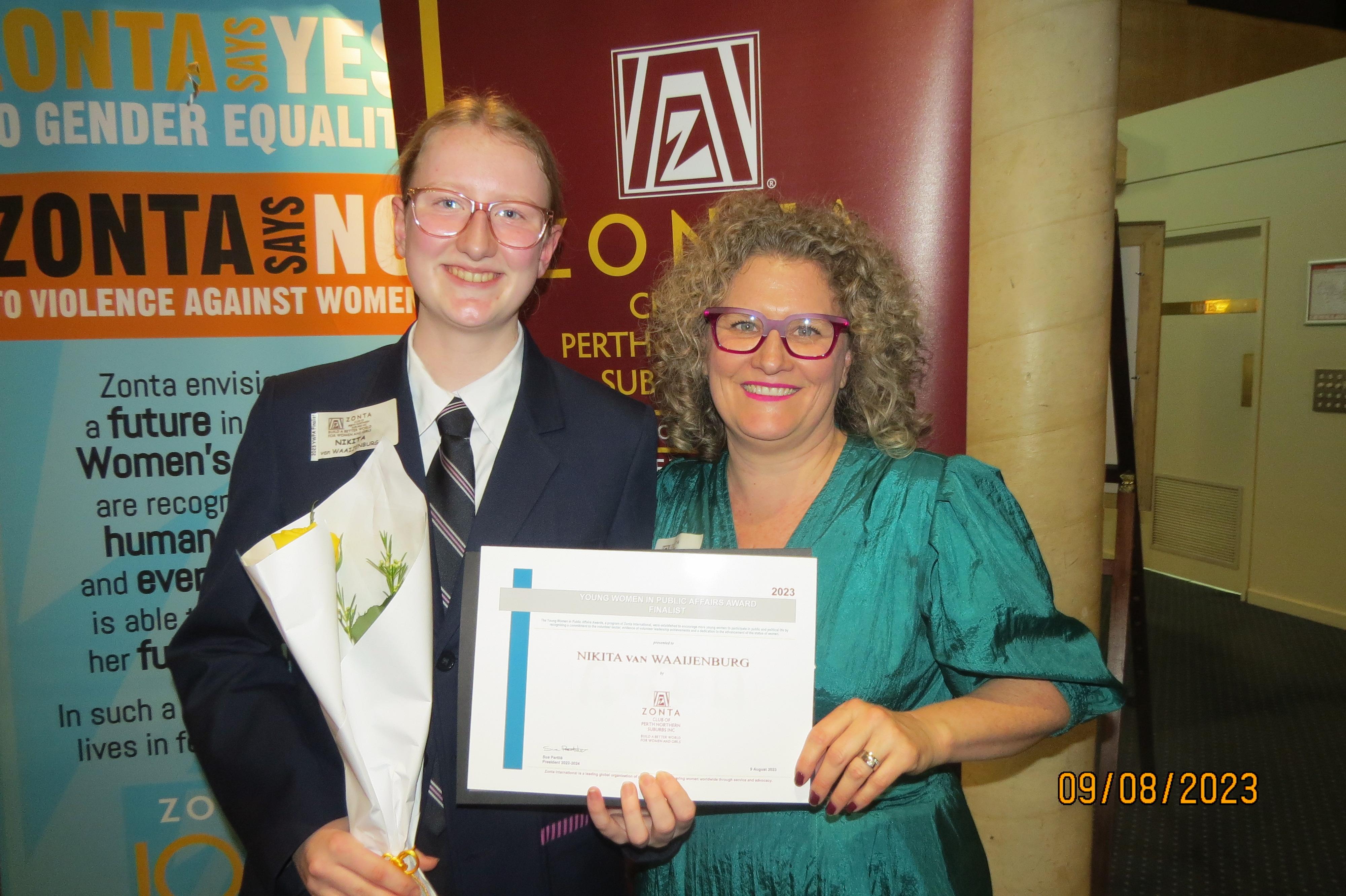 In early August, Year 12 student Nikita, 12F3, was one of the three finalists in the prestigious Young Women in Public Affairs Award sponsored by ZONTA. This organisation supports and promotes young women in business and public affairs. This award recognises young women, ages 16-19, who have demonstrated leadership skills and commitment to public service and civic causes. It encourages them to continue their participation in public and political life. Nikita’s accomplishments reflect her dedication and hard work and highlight our young students’ incredible potential.